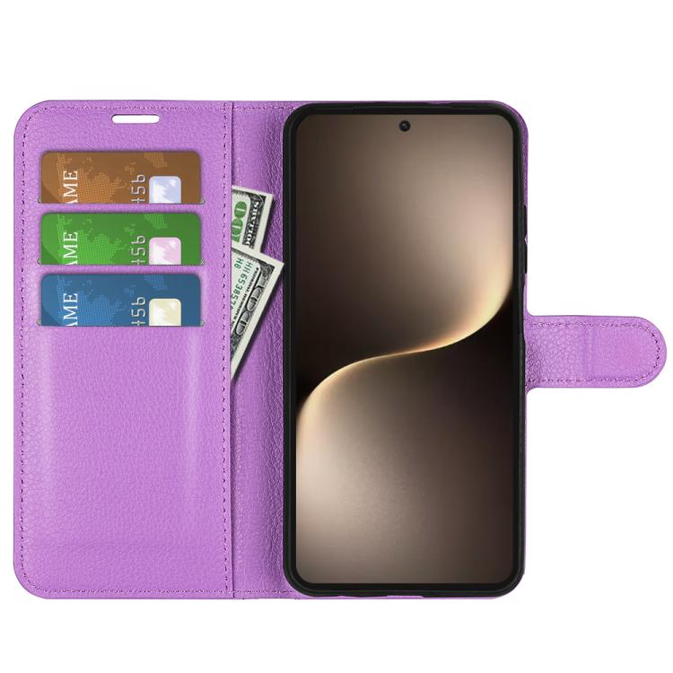 Funda de Cuero con Tapa Horizontal y Soporte para Honor Magic7 5G (Morado) con Textura de Lichi