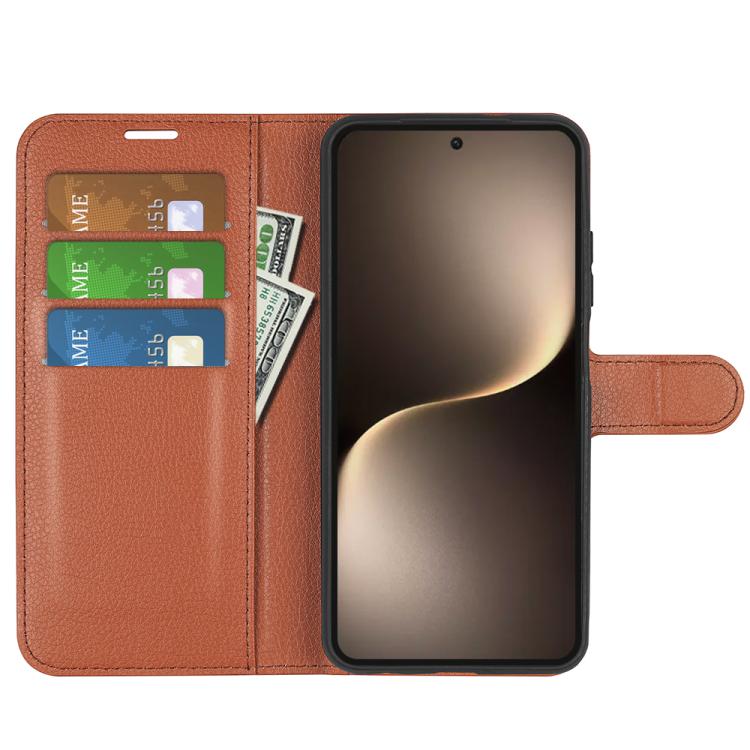 Funda de Cuero Honor Magic7 5G con Tapa Horizontal, Textura de Lichi y Soporte (Marrón)