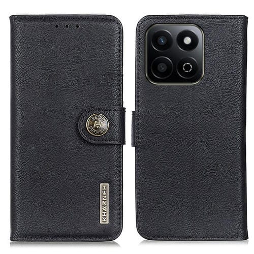 Funda de Cuero Khazneh con Tapa Horizontal y Textura de Piel de Vaca para Honor 200 Smart y Play 60 Plus (Negra)