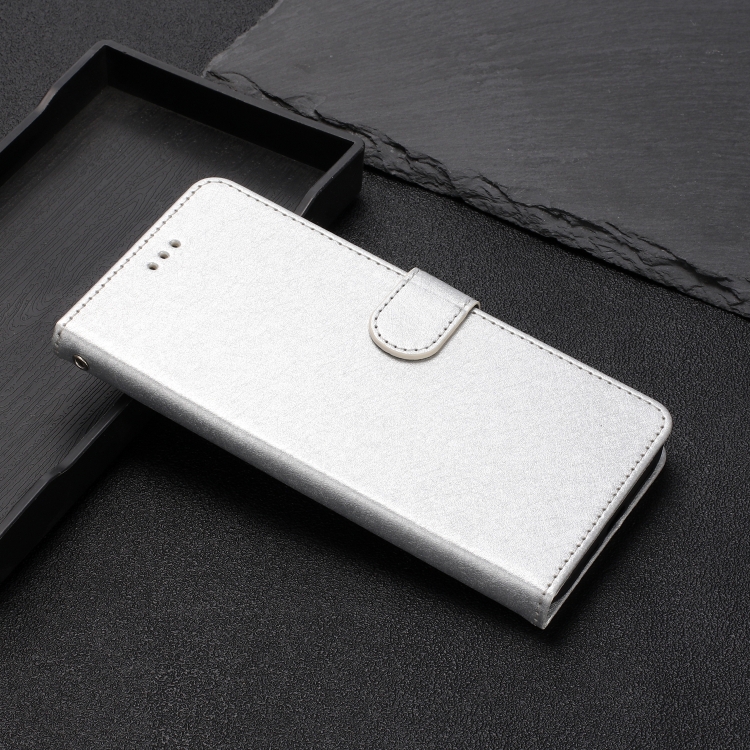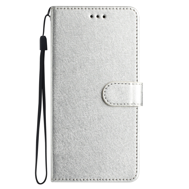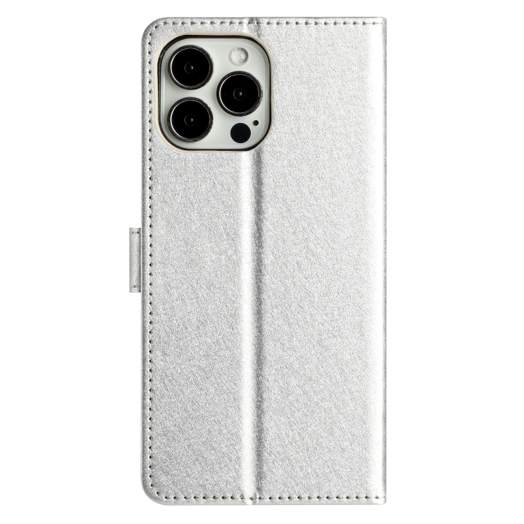 Funda de Cuero con Tapa Horizontal y Textura de Seda para iPhone 16 Pro Max (Plateada)
