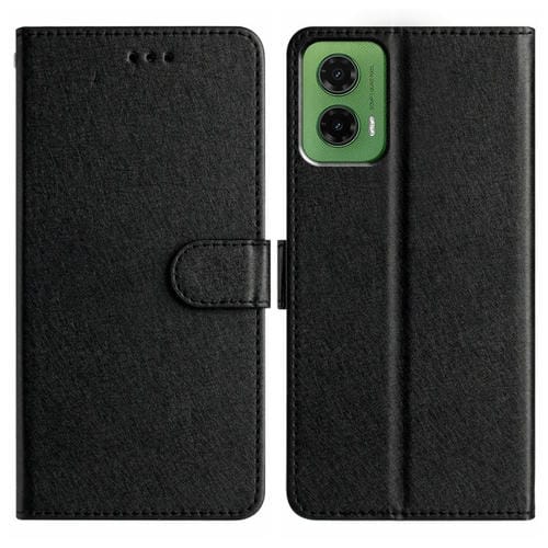 Funda de Cuero con Tapa Horizontal y Textura de Seda para Motorola Moto G35 (Negro)