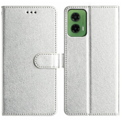 Funda de Cuero con Tapa Horizontal y Textura de Seda para Motorola Moto G35 (Plateada)