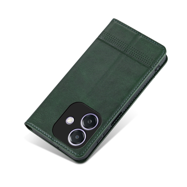 Funda de Piel con Tapa Magnética Azns para Oppo A3X 4G (Verde Oscuro)
