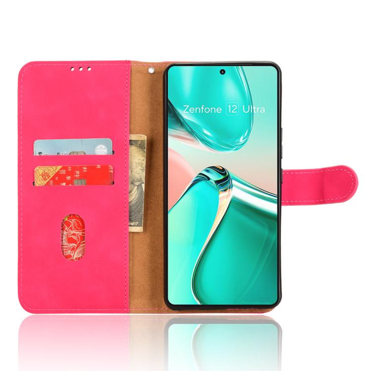 Funda de Cuero con Tapa Magnética para Asus Zenfone 12 Ultra (Rosa y Rojo)