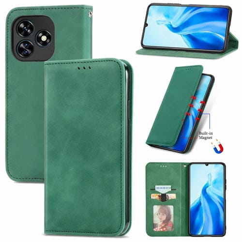 Funda de Cuero con Tapa Magnética y Tacto Retro para Oukitel C51 (Verde)