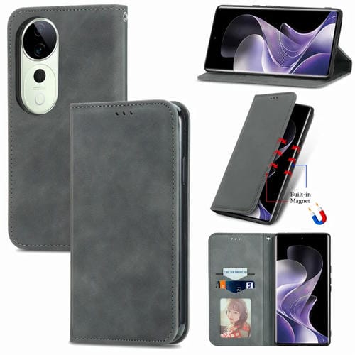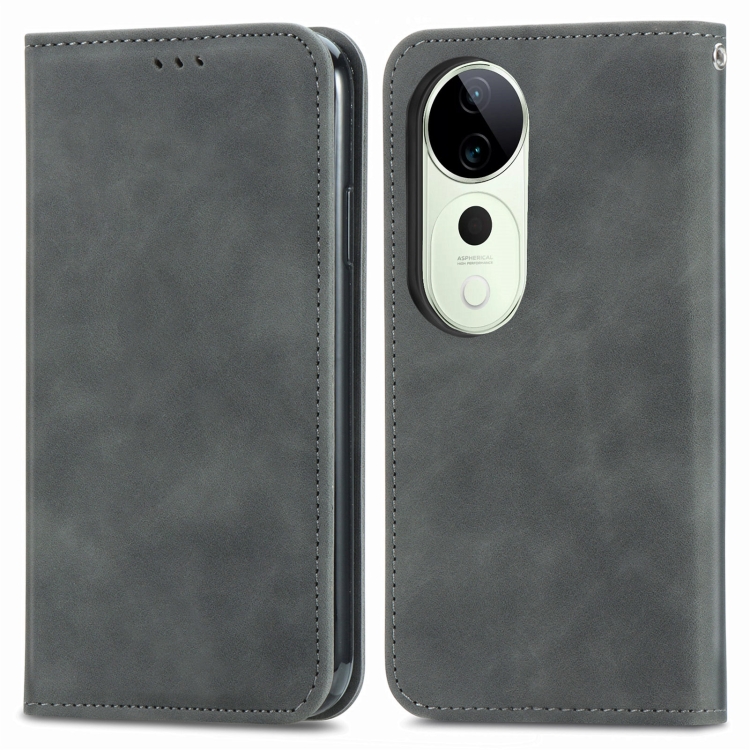 Funda de Cuero con Tapa Magnética y Tacto Retro para Vivo T3 Ultra (Gris)