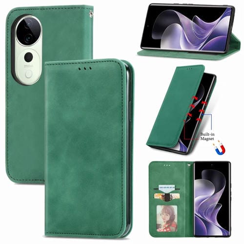 Funda de Cuero con Tapa Magnética y Tacto Retro para Vivo T3 Ultra (Verde)