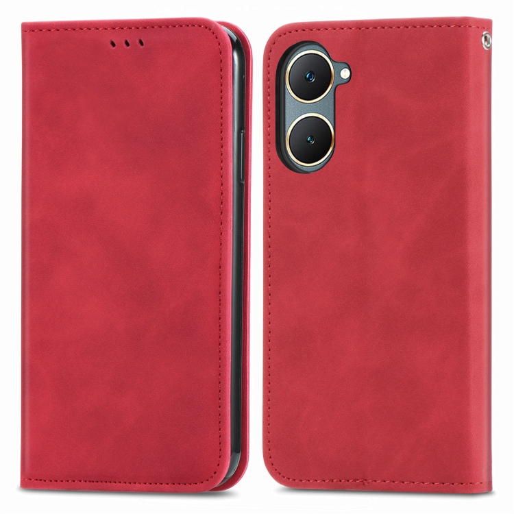 Funda de Cuero con Tapa Magnética y Tacto Retro para Vivo Y18E (Rojo)