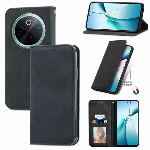 Funda de Cuero con Tapa Magnética y Tacto Retro para Vivo Y300 Pro (Negra)