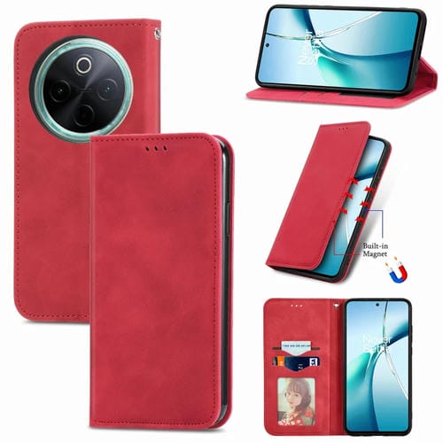 Funda de Cuero con Tapa Magnética y Tacto Retro para Vivo Y300 Pro (Rojo)