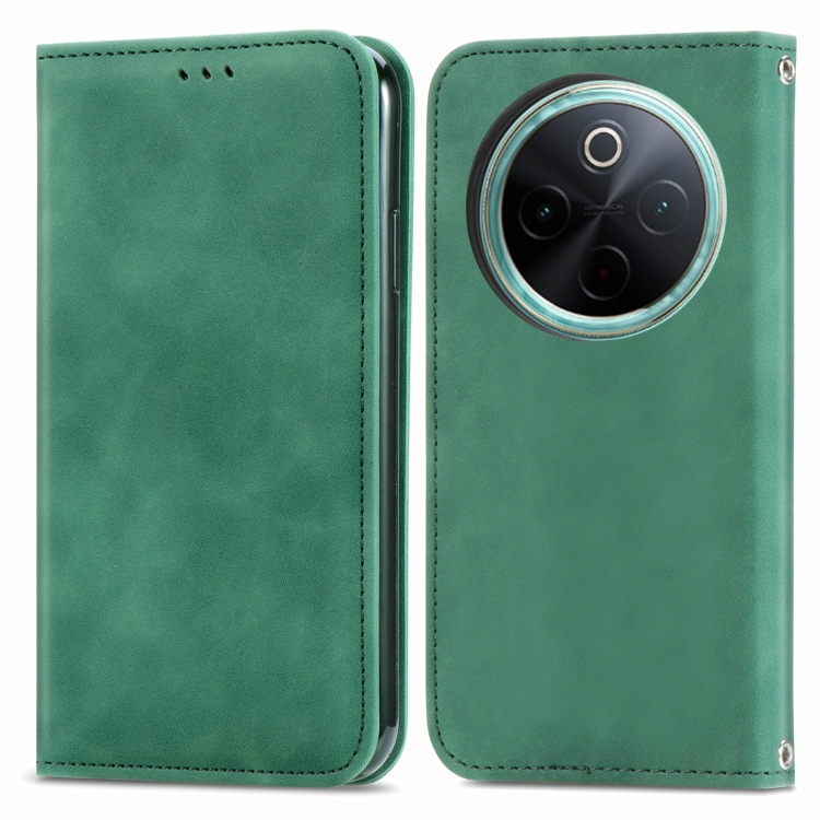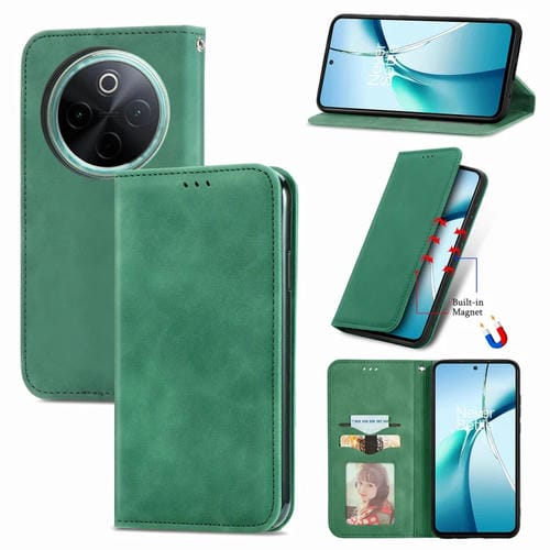 Funda de Cuero con Tapa Magnética y Tacto Retro para Vivo Y300 Pro (Verde)