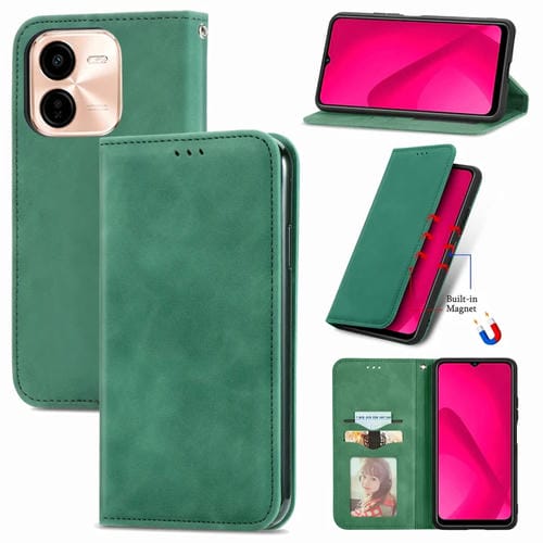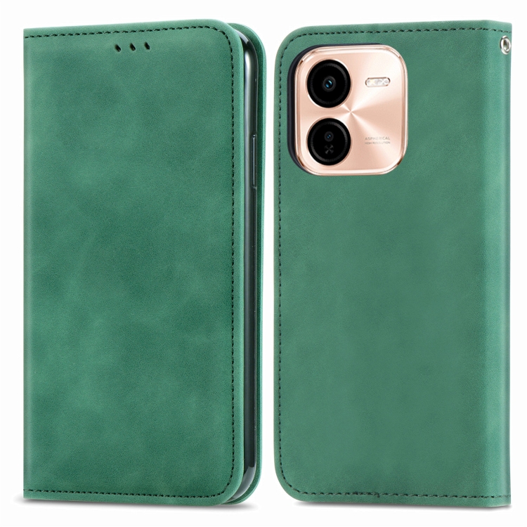 Funda de Cuero con Tapa Magnética y Tacto Retro para Vivo Y37 Pro (Verde)