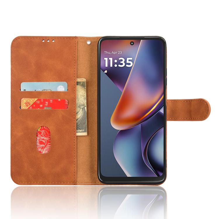 Funda de Cuero con Tapa Magnética y Tacto Suave para Motorola Moto G 5G (2025) (Marrón)