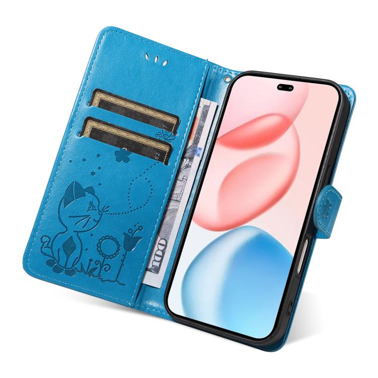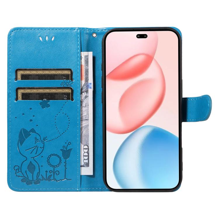 Funda de cuero con tapa para Honor 400 Pro Global (160,8 mm), diseño de gato y abeja (azul)