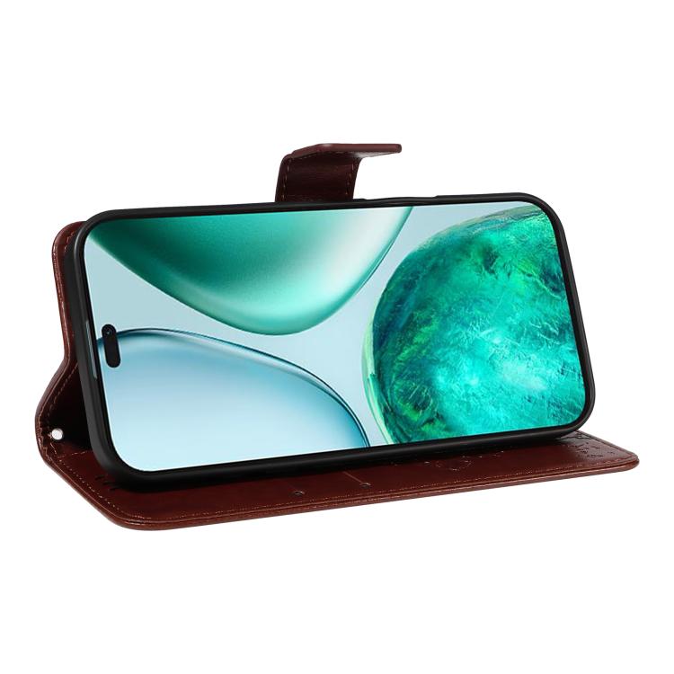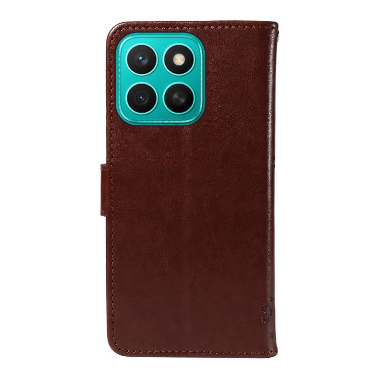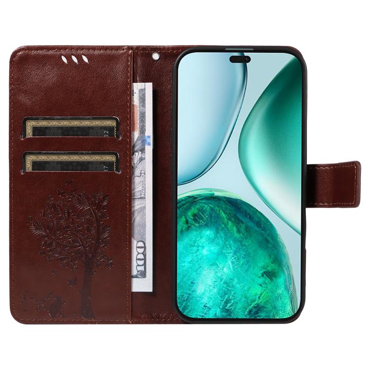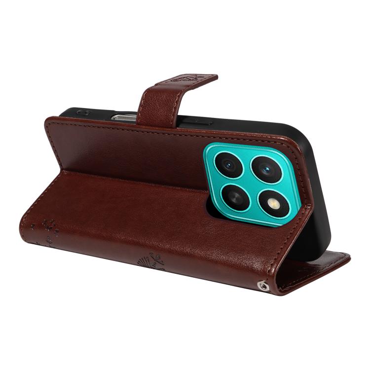 Funda de Cuero con Tapa para Honor X8C 4G Global con Estampado de Árbol y Gato (Café)