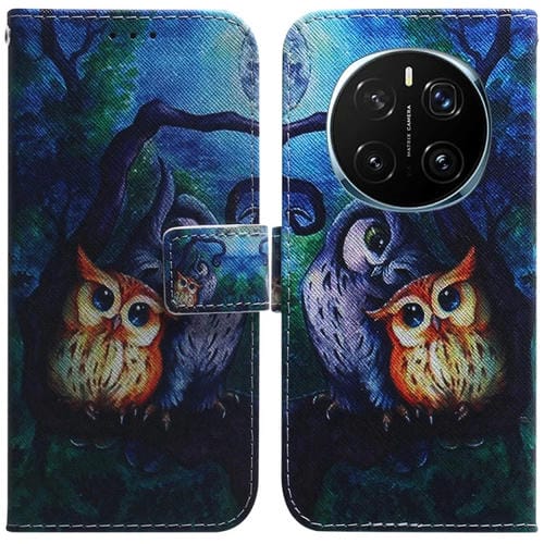 Funda de Cuero con Tapa Honor Magic 7 Pro Búho con Pintura al Óleo (Colorido)