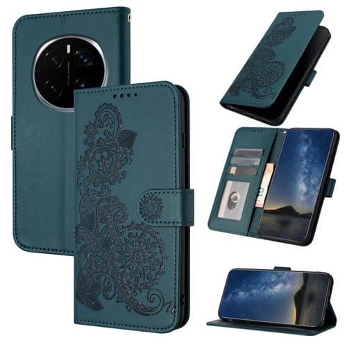 Funda de Cuero con Tapa para Honor Magic7 Pro Diseño Flor de Datura en Relieve (Verde Oscuro)
