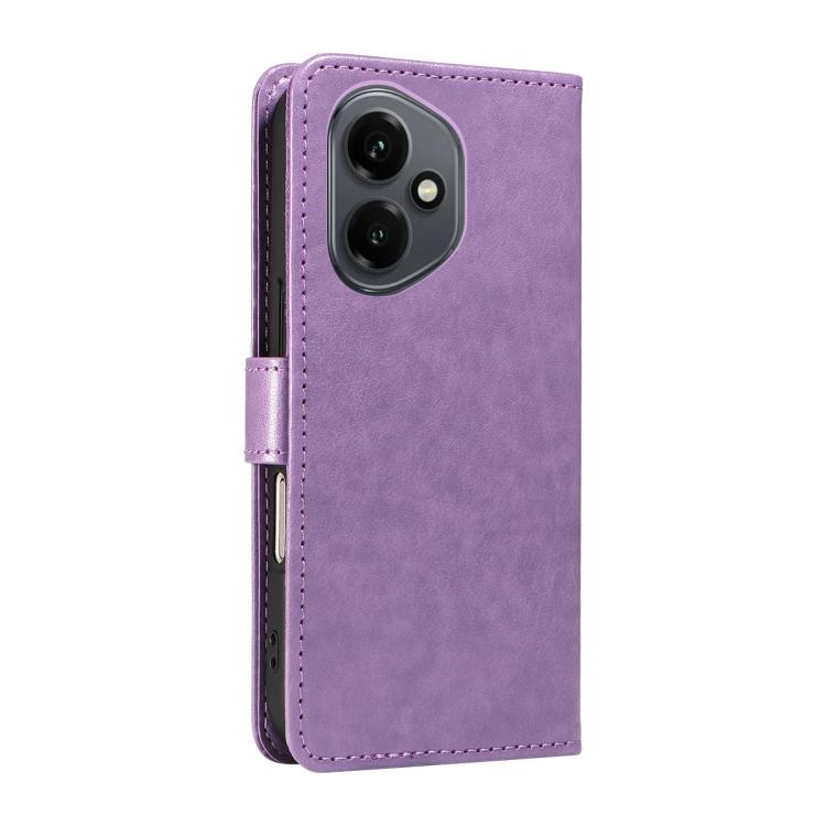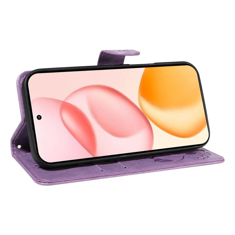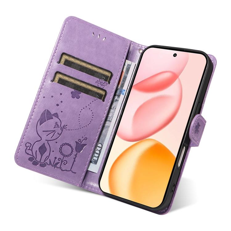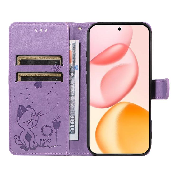 Funda de cuero con tapa para teléfono Honor 400 Global de 156,5 mm con diseño de gato y abeja (morado)
