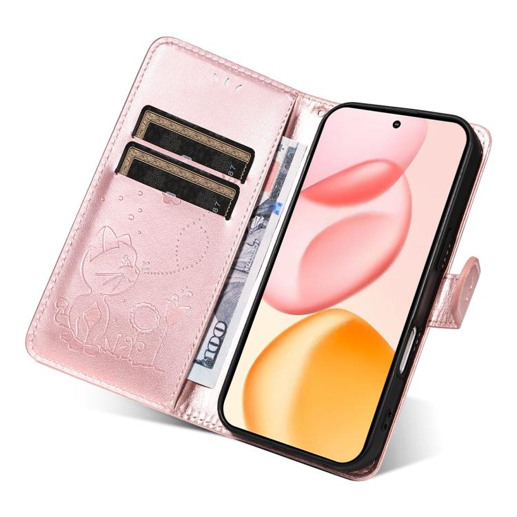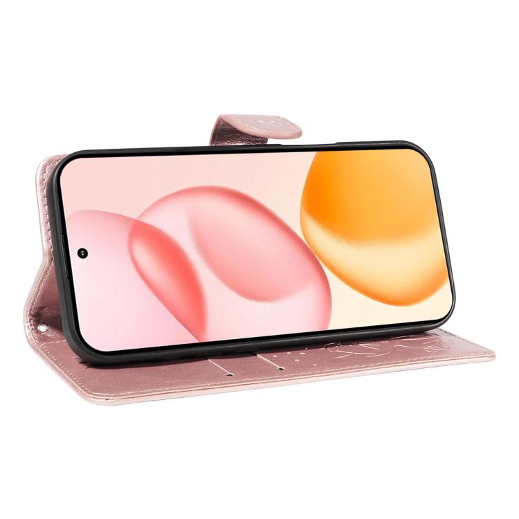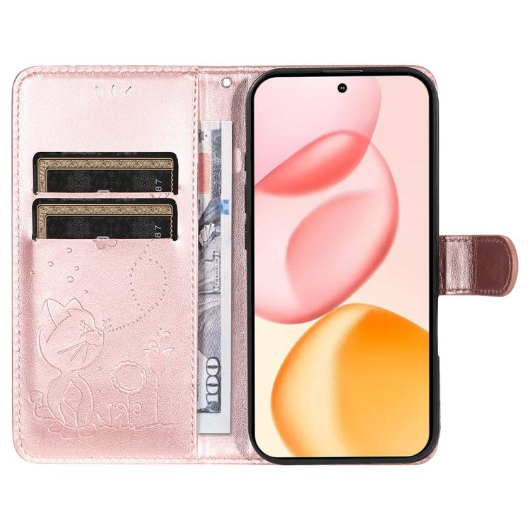 Funda de cuero con tapa para teléfono Honor 400 Global de 156,5 mm con diseño de gato y abeja (oro rosa)