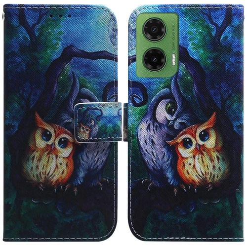 Funda de Cuero con Tapa para Motorola Moto G35 con Dibujo Búho Pintura al Óleo