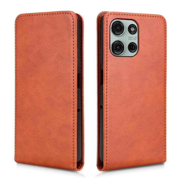Funda de Cuero con Tapa Vertical Magnética para Motorola Moto G75 5G (Marrón)