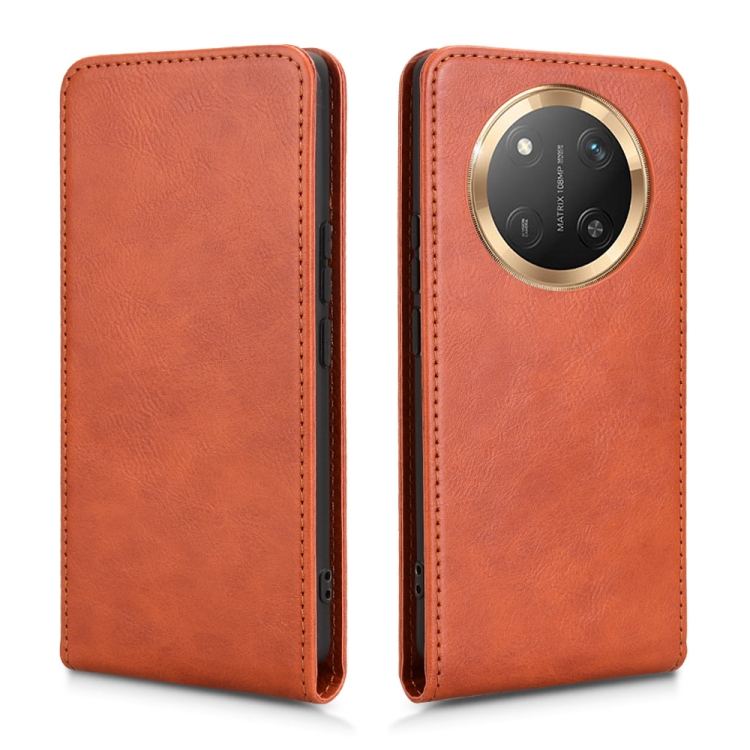 Funda de Cuero con Tapa Vertical Magnética para Honor X60 Pro 5G/X9C 5G (Marrón)