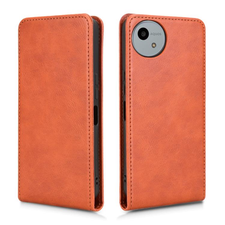 Funda de Cuero con Tapa Vertical Magnética para Sharp Aquos Wish4 (Marrón)