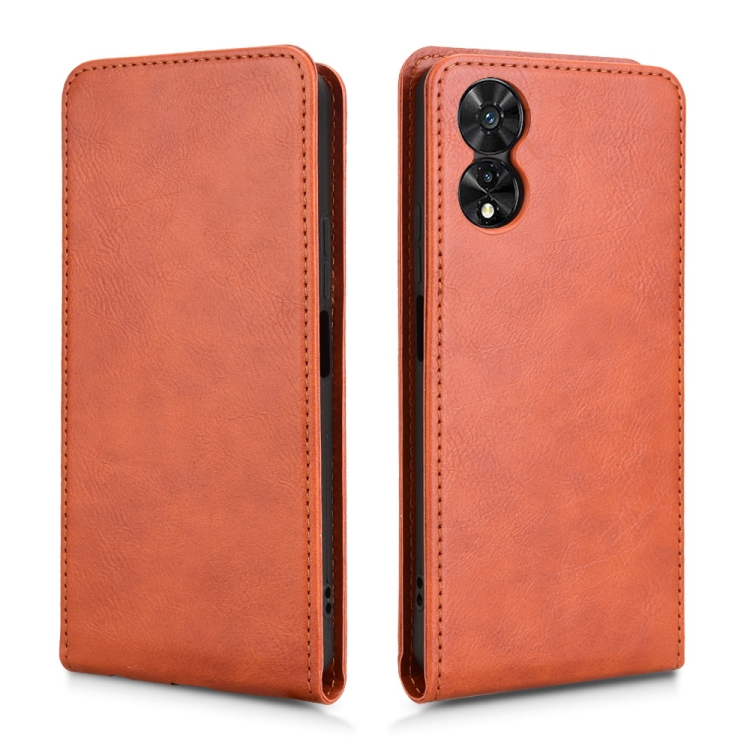 Funda de Cuero con Tapa Vertical Magnética para Teléfono TCL 505 4G (Marrón)