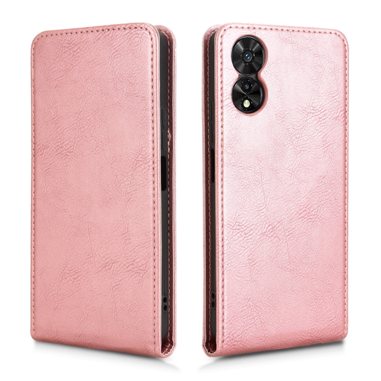 Funda de Cuero con Tapa Vertical Magnética para Teléfono TCL 505 4G (Oro Rosa)