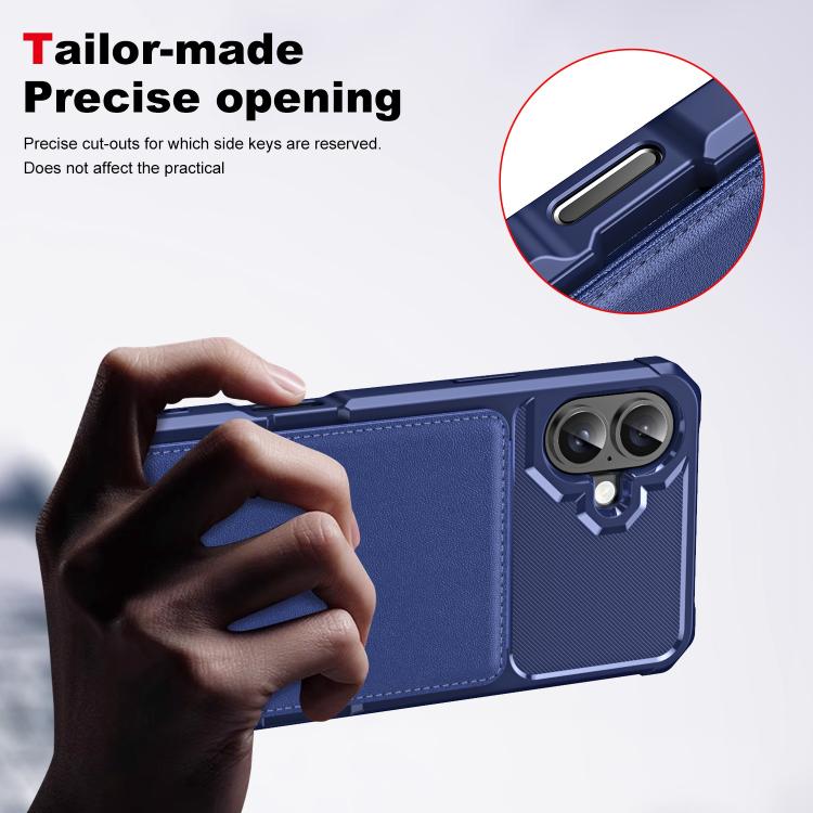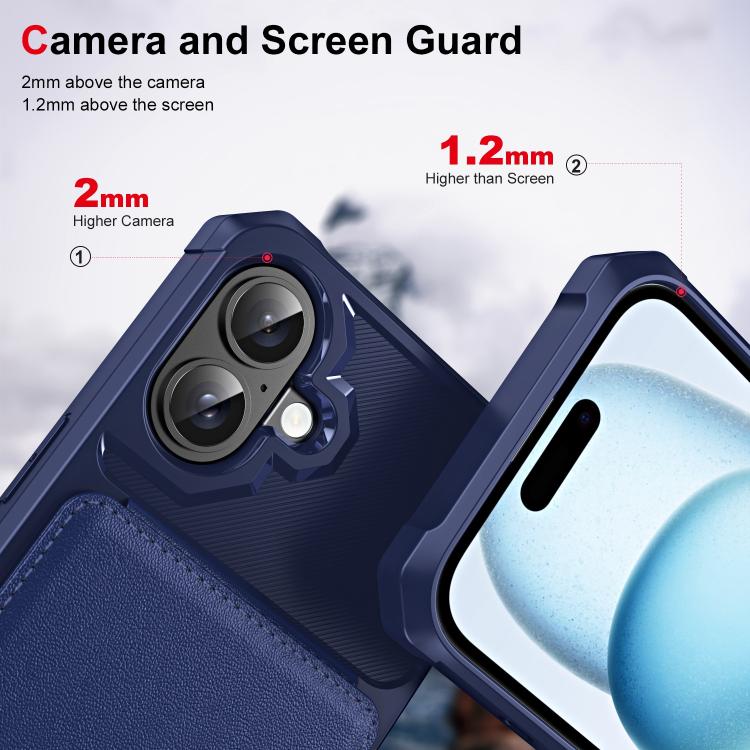 Funda de Cuero con Tapa Vertical para iPhone 16 Tarjetero (Azul Oscuro)