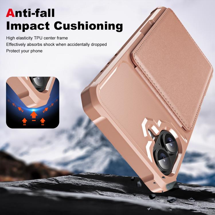 Funda de Cuero con Tapa Vertical para iPhone 16 con Tarjetero (Oro Rosa)