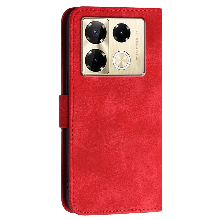 Funda de Cuero con Tapa y Cordón para Infinix Note 40 Pro+ 5G Yx0080 (Rojo) Diseño Mariposa y Cuadrícula