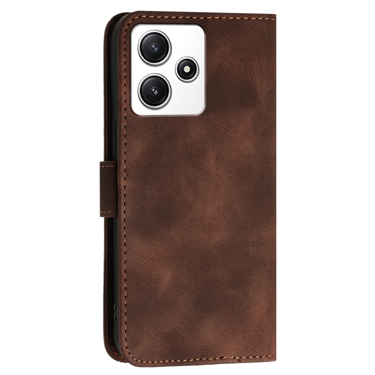 Funda de Cuero con Tapa y Cordón para Redmi 12 5G Yx0080 con Diseño En Relieve de Mariposa y Cuadrícula (Café)
