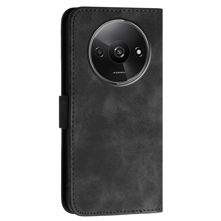Funda de Cuero con Tapa y Cordón para Redmi A3 Yx0080 con Diseño En Relieve de Mariposa y Cuadrícula (Negro)