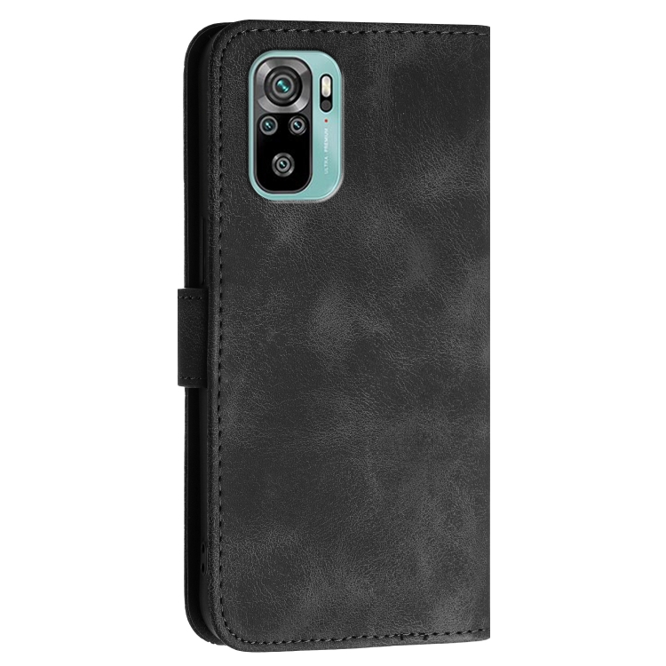 Funda de Cuero con Tapa y Cordón para Redmi Note 10 4G Global Yx0080 con Diseño de Mariposa En Relieve y Cuadrícula (Negro)