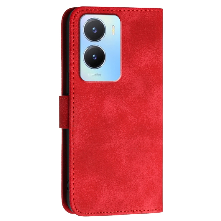 Funda de Cuero con Tapa y Cordón para Vivo Y16 4G Global Yx0080 con Diseño En Relieve de Mariposa y Cuadrícula (Rojo)