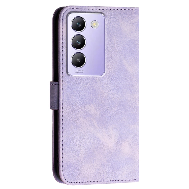 Funda de Cuero con Tapa y Cordón para Vivo Y200E 5G Global Yx0080 con Diseño En Relieve de Mariposa y Cuadrícula (Morado Claro)