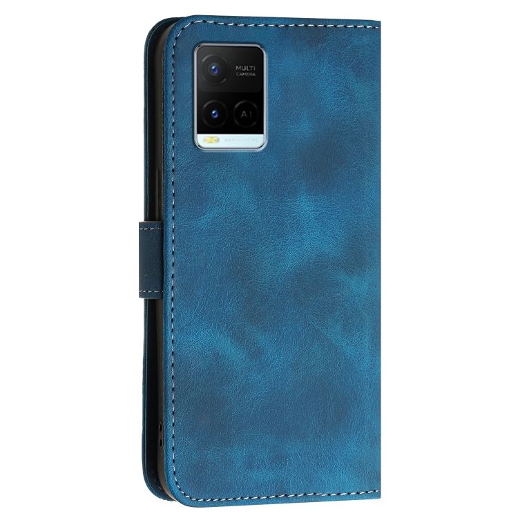 Funda de Cuero con Tapa y Cordón para Vivo Y21 / Y33S / Y21S Yx0080 con Diseño En Relieve de Mariposa y Cuadrícula (Azul Oscuro)