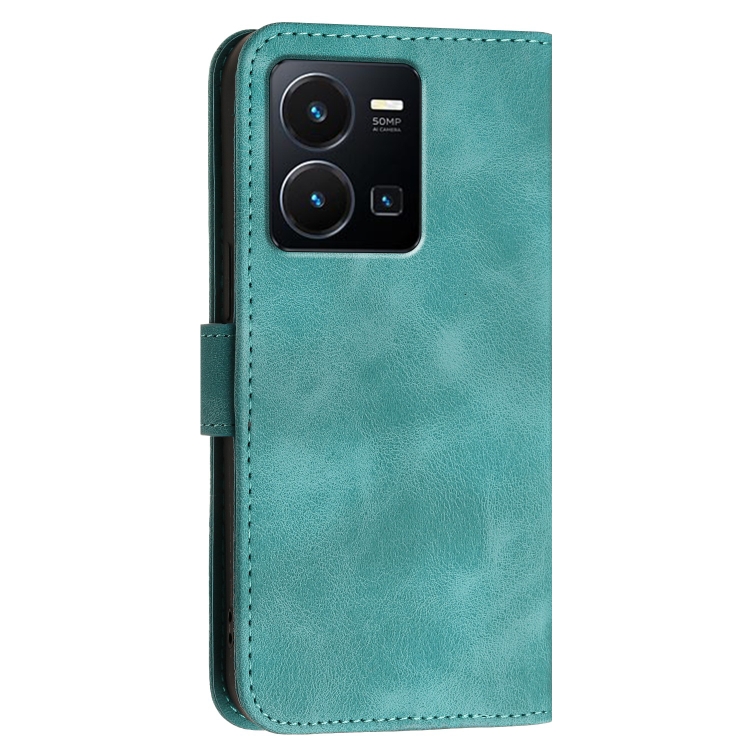 Funda de Cuero con Tapa y Cordón para Vivo Y77E 5G Yx0080 con Diseño En Relieve de Mariposa y Cuadrícula (Azul Claro)