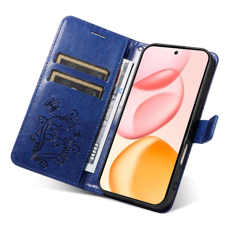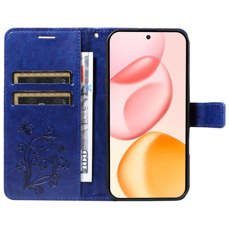 Funda de cuero con tapa y diseño de mariposa en relieve 3D para Honor 400 Global (156,5 mm) (azul)