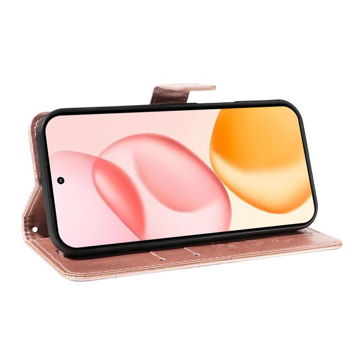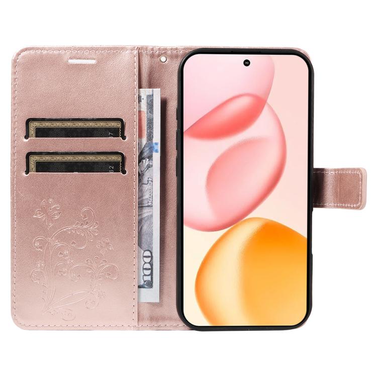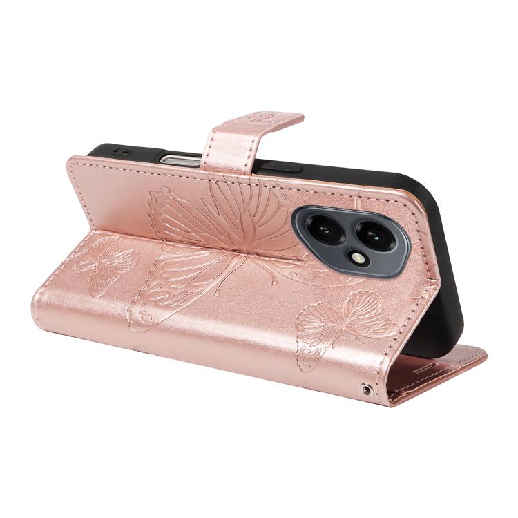 Funda de cuero con tapa y diseño de mariposa en relieve 3D para Honor 400 Global (156,5 mm) (oro rosa)