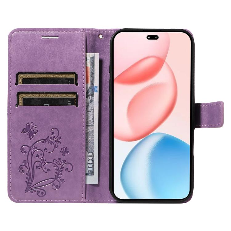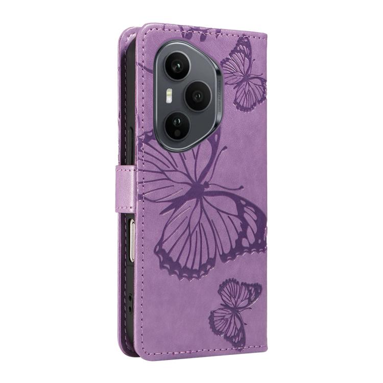 Funda de cuero con tapa y diseño de mariposa en relieve 3D para Honor 400 Pro Global (160,8 mm) (morado)