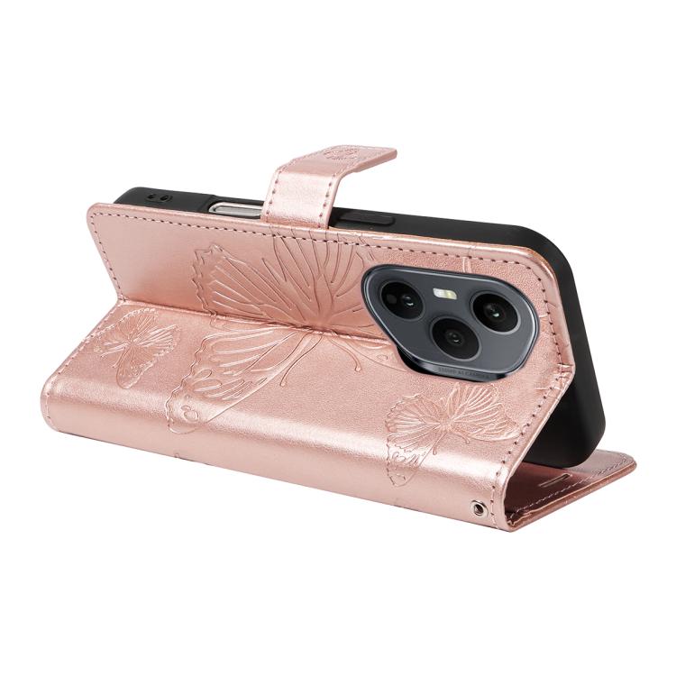 Funda de cuero con tapa y diseño de mariposa en relieve 3D para Honor 400 Pro Global (160,8 mm) (oro rosa)