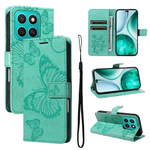 Funda de Cuero con Tapa y Mariposas en Relieve 3D para Honor X8C 4G (Verde)
