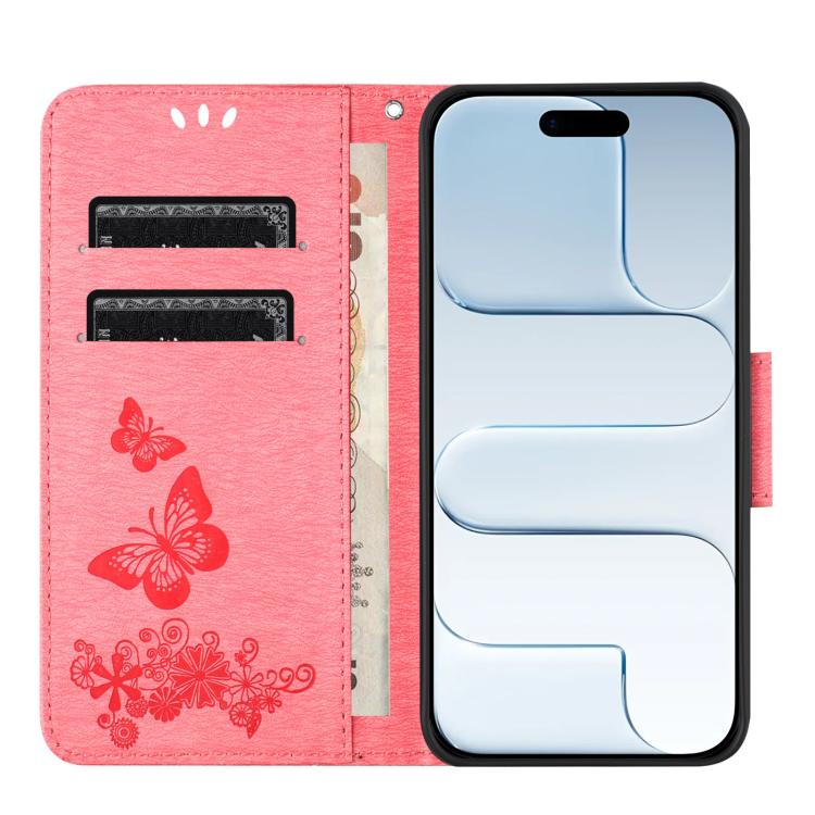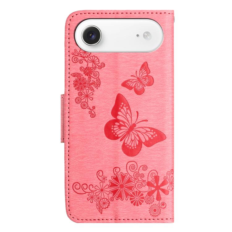 Funda de cuero con tapa y diseño de mariposas en relieve para iPhone Air (rosa)