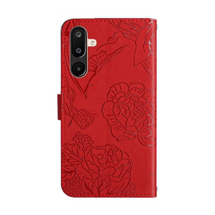 Funda de cuero con tapa y diseño de mariposas en relieve para Samsung Galaxy M36 5G (roja)