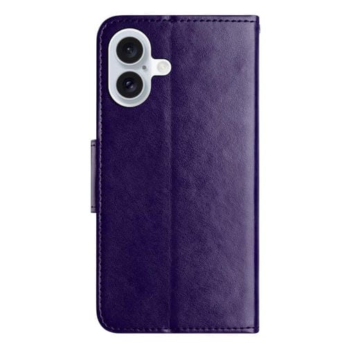Funda de cuero con tapa y diseño de mariposas y flores para iPhone 17 (morado oscuro)