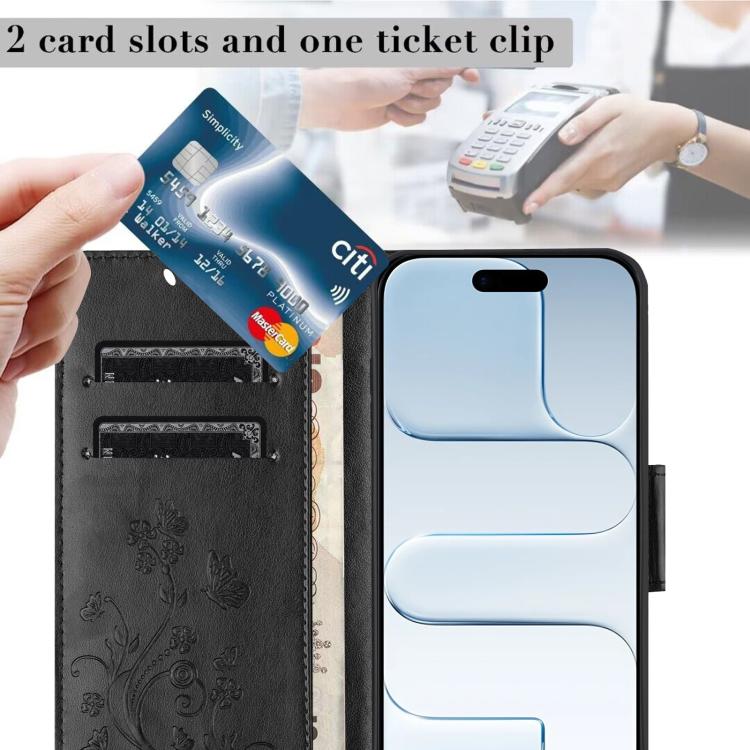 Funda de cuero con tapa y diseño de mariposas y flores para iPhone Air (negra)