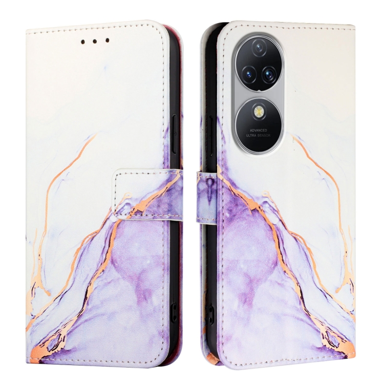 Funda de Cuero con Tapa y Diseño Mármol para Oukitel C38 Pt003 (Blanco y Morado)