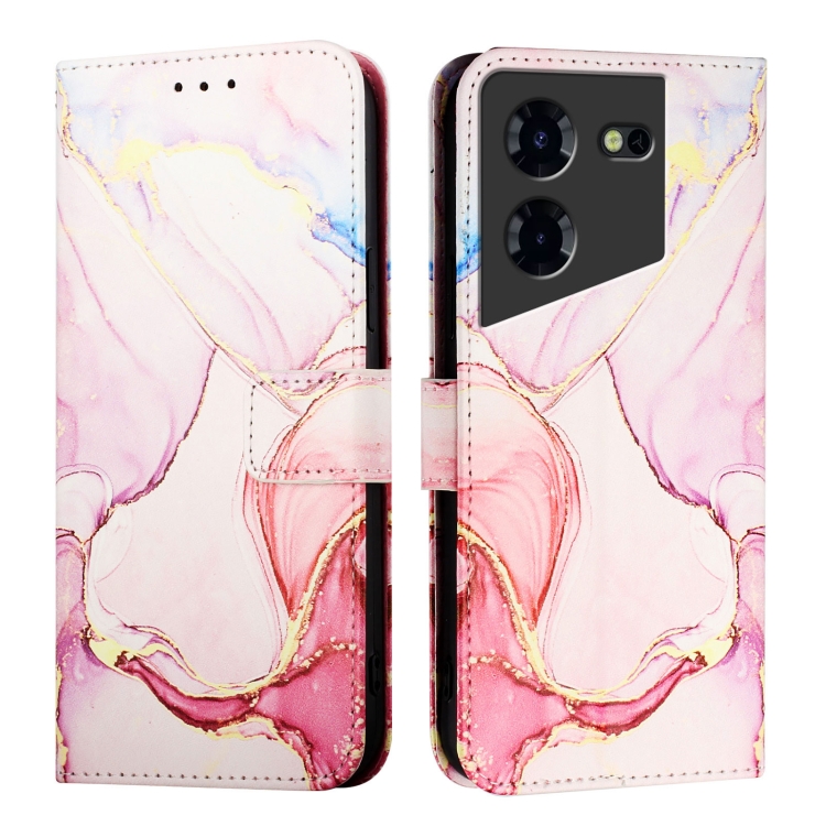 Funda de Cuero con Tapa para Tecno Pova 5 Pro 5G Pt003 Diseño Mármol (Oro Rosa)